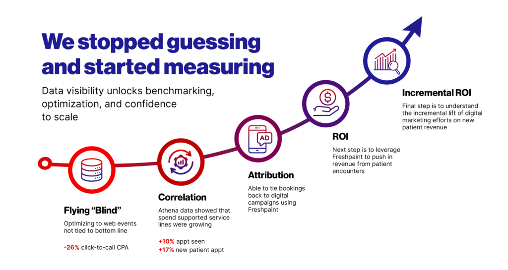 Now, data could flow from Epic to Google Ads, Meta, and Viant. The algorithm could finally see what Novant already knew: service lines that received investment were growing.