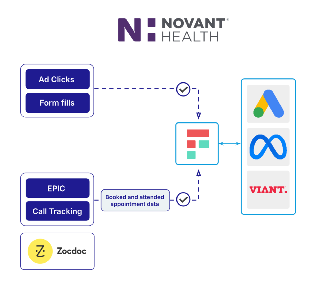 Before Novant could move to real attribution, they needed to solve a fundamental problem: how do you get patient outcome signals to ad platforms in a privacy-compliant way?