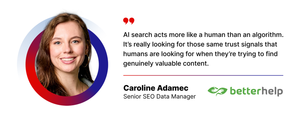Caroline Adamec, Senior SEO Data Manager at BetterHelp, put it plainly: