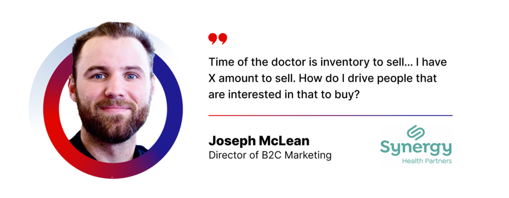 Joseph McLean, Director of B2C Marketing at Synergy Health Partners, came at the same problem from a retail background. He frames provider time as inventory.